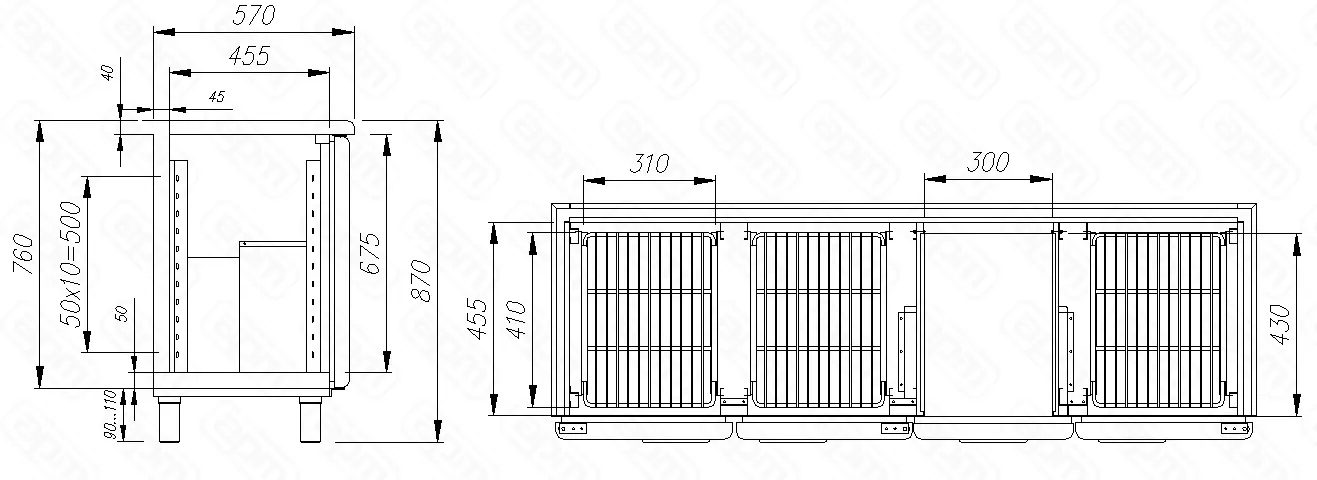 1660х570х760(870)мм, 0...+7С, 360л, 220В, 3 двери. Экс. пл-дь, мм - 1,27, Потр-е эл/эн в сутки, кВт - 6