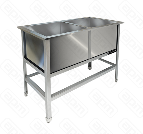 Двухсекционная моечная ванна KAYMAN ВМ-412/600 предназначена для мытья, дезинфекции и ополаскивания использованной посуды и инвентаря. Используется на предприятиях общественного питания и торговли.