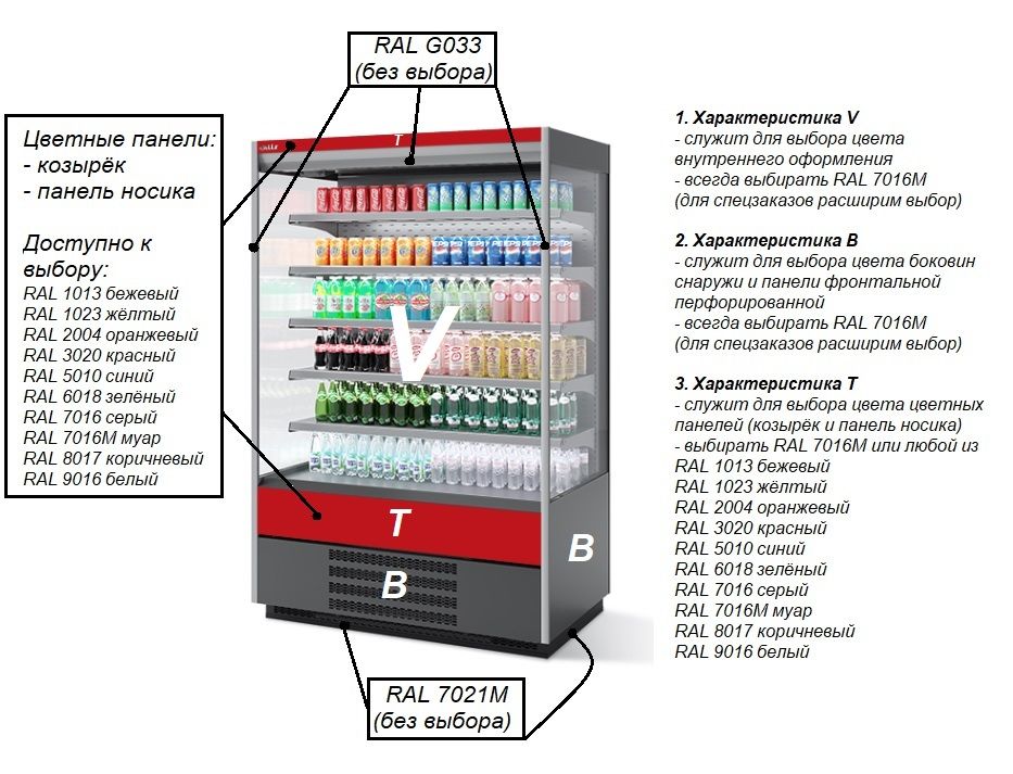 Витрина холодильная BERG 100 RAL7016 предназначена для демонстрации, охлаждения и краткосрочного хранения продуктов питания, напитков, закусок и десертов на предприятиях общественного питания и торговли.